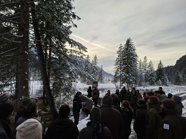 Neben den theoretischen Programmpunkten standen Exkursionen in den winterlichen Naturpark auf dem Programm. Im Ettaler Weidmoos lag der Fokus auf Landschaftspflegeprojekten mit dem Team Ammertal sowie auf Maßnahmen der Besucherlenkung im Naturschutzgebiet. Eine weitere Exkursion führte in den nördlichen Teil des Naturparks, wo die Ranger die Klimawiese bei Altenau, den Sinnesweg in Saulgrub sowie Kooperationen mit der regionalen Landwirtschaft kennenlernen konnten.