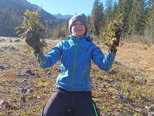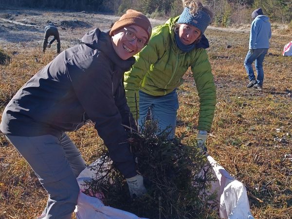 Kiesflächen sind extreme Lebensräume mit z. T. extrem selten Tier- und Pflanzenarten. Auf einer Fläche an der Linder wurden Gehölze maschinell entnommen, um für seltene Arten, wie der gefleckten Schnarrschrecke, wieder Licht & Platz zu schaffen. Leider sind unglaublich viele kleine Fichten auf der Fläche zurückgeblieben, die per Hand gezogen oder per Handzwicke geschnitten wurden, damit die Fläche nicht in ein paar Jahren wieder komplett zugewachsen ist. Die Aktion fand in Zusammenarbeit mit dem Landesbund für Vogelschutz (LBV) im Rahmen des Projekts “Bayerns Seltenste: Arten der Trockenlebensräume” statt.