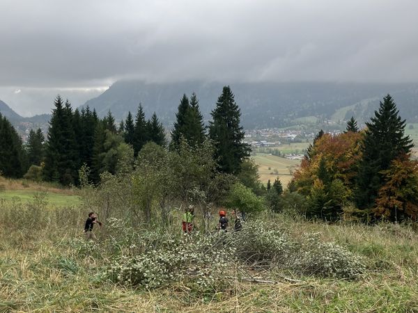 Extensiv genutzte Wiesen sind das Zuhause vieler seltenen Pflanzen- und Tierarten. Oft sind diese Flächen nur durch Pflege per Handarbeit zu erhalten. Viele Flächen der Wiesmahd zwischen Unter- und Oberammergau wachsen vermehrt mit Bäumen zu. Diese werden per Hand geschnitten und abgefahren, damit seltene Pflanzen, Vögel und Insekten wieder Licht und Platz bekommen.