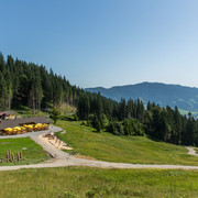 Von der Kolbensattelhütte geht es über die etwa 2,6 km lange Strecke des Alpine Coasters in einem Schlitten mit Rückenlehne und Sicherheitsgurt zurück ins Tal. Bei einer Höchstgeschwindkeit von 40 km/h bleibt jedoch noch genügend Zeit, die herrlichen Ausblicke zu genießen. Die Geschwindigkeit lässt sich übrigens selbst über 2 Bremshebel steuern.