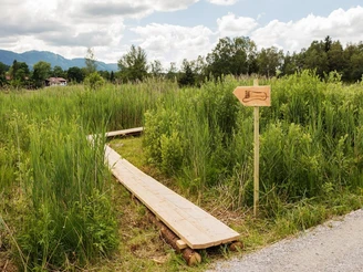 Auf einem wunderschönen Weg, rund um den Moorsee in Bad Bayersoien, können Sie auf dem Barfußpfad (1,9 Km) die unterschiedlichsten Untergründe mit Ihren Füßen erfühlen.