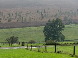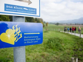 Wir folgen dem Pfad über die große Wiese, über das Rochusfeld (Weg Nr. 6a) und halten uns beim nächsten kleinen Sträßchen links. An mehreren Höfen vorbei folgen wir dem Wanderweg 8b Richtung Hinterkehr. Der Pfad führt durch eine Wiese, dann nach rechts am Gartenzaun entlang. Wir halten uns weiterhin rechts, gehen das Sträßchen bergab und durch Hinterkehr hindurch. Anschließend folgen wir in einer scharfen Linkskurve dem Wegweiser „Schöffau 5,5 km“. Kurz nachdem wir zu unserer Linken einen Bauernhof passiert haben, biegen wir scharf rechts ab und gelangen bergauf nach Vorderkehr. Wir folgen den Schlangenlinien des Weges und lassen dabei die kleine Kapelle zu unserer Rechten liegen. Kurz darauf führt der Feldweg bergab und wir haben einen herrlichen Ausblick auf den Staffelsee mit der Gebirgskette im Hintergrund. Nach mehreren Kurven beginnt rechts neben einem landwirtschaftlichen Gebäude ein kleiner Pfad Richtung „Sprittelsberg“. Wir folgen ihm, gelangen kurz darauf an eine Straße und gehen links. Wo das Wäldchen beginnt, gehen wir geradeaus weiter und folgen dem Schild „Sprittelsberg 1,3 km“. Kurz vor Sprittelsberg überqueren wir einen Bach, treffen auf eine Straße und folgen ihr nach rechts bergauf. Wir können die Häuser bereits sehen und gleich beim ersten Hof biegen wir links ab. Hier gibt es bei Agathe Fischer Käse aus eigener Herstellung. Der Weg führt uns am Hof vorbei weiter, wir treffen auf ein Sträßchen und folgen ihm nach links. Beim Schild „Staffelsee 3,0 km, Murnau 7,5 km“ biegen wir links ab und folgen dem Forstweg durch den Wald, bis wir kurz vor dem Staffelsee auf einen Weg stoßen, dem wir nach rechts folgen und gleich darauf wieder rechts abbiegen Richtung Westried. Wir bleiben auf diesem Waldweg und kommen schließlich an eine Teerstraße, gehen bei der Gabelung links und erreichen die Verbindungsstraße zwischen Murnau und Bad Kohlgrub. Wir biegen links in den Fußweg neben der Straße ein, überqueren nach wenigen Metern die Straße (Vorsicht Verkehr!) und setzen unseren Weg gegenüber in der Ammergauer Straße fort. Diese mündet schon nach wenigen Metern in einen Fußweg, der über die Gleise der Oberammergauer Bahnstrecke führt (Vorsicht!). Danach gehen wir nach links weiter und sind nun in Moosrain. Wir folgen der Straße bis der „Moosrundweg“ nach links abzweigt, folgen ihm und kommen in der nächsten Kurve an einen Fußweg mit dem Schild „Ramsachkirche 40 Min.“. Wir begeben uns auf diesen Fußweg, durch einen kleinen Auwald hindurch und treten dann heraus auf den Murnauer Höhenrücken mit herrlichem Ausblick auf‘s Murnauer Moos und die umgebenden Berge. Anschließend überquert der Weg die Gleise (Vorsicht!), führt nach rechts Richtung „Ähndl“ und entlang der Bahngleise bis er diese wieder kreuzt (Vorsicht!) und auf der anderen Seite weiterführt. Wieder haben wir einen wunderbaren Ausblick auf‘s Moos und die gesamte Landschaft, eingerahmt durch die Bergketten von Ester-, Wetterstein- und Ammergebirge. Eine Stele und Bänke laden uns hier zum Verweilen ein.