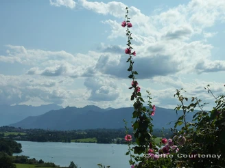 Bei Neuschnee im Winter kann es sein, dass der Fußweg am See nicht gespurt ist. Dann biegen wir nicht in die Seestraße ab, sondern gehen rechts weiter, passieren den Gasthof Westner (Ruhetag dienstags von Mai bis September, Montag und Dienstag von Oktober bis April), Tel. 0 88 41 / 9 06 73, www.westnerriegsee.de und gleich darauf das „Haus des Gastes“. Kurz danach biegen wir links in die Hofheimer Straße ab und folgen diesem Sträßchen so lange, bis wir auf eine Teerstraße treffen. Schon von weitem sehen wir die Mesnerhauskapelle vor uns auf dem Hügel.