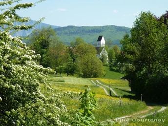 Ansonsten folgen wir dem Höhenweg nach rechts in Richtung Hagen. Die kleine, dem Hl. Blasius geweihte Kirche, war einst eine viel besuchte Wallfahrtsstätte, die bereits seit 1300 eine eigene Pfarrei hatte. Neben reicher Ausstattung ist ein „Asylstein“ erwähnenswert, der ursprünglich außen angebracht war und besagte, dass jeder, der die Kirche erreichte, hier Schutz genoss und nicht weiter verfolgt werden durfte. Gleich neben der Kirche befindet sich der Biergarten des ehemaligen Gasthofes Heimgarten, Tel. 0 88 41/14 14. Er ist bei schönem Wetter freitags ab 17.00 Uhr sowie Samstag und Sonntag geöffnet.