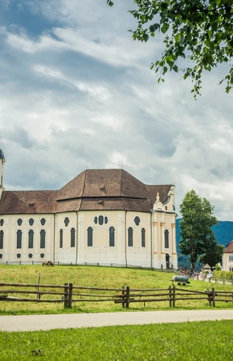 Die Wieskirche-Runde zählt zu den "Klassikern" der Ammergauer Alpen und startet in Bad Bayersoien am Soier See. Neben der berühmten Wieskirche gibt es zahlreiche weitere Sehenswürdigkeiten entlang der Strecke, darunter die Echelsbacher Brücke, die im Jahr 1147 erbaute romanische Klosterkirche St. Johannes Baptist in Steingaden und das Kraftwerk Kammerl. Natürlich kommt auch das Radfahren auf dieser Tour nicht zu kurz. Entlang traumhafter Wege über die Königstraße, die kaum Verkehr aufweisen, erlebst du einige der schönsten Abschnitte der gesamten Region.