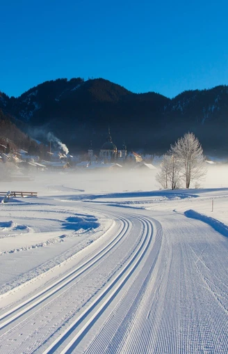 Für eine Pause dazwischen empfehlen wir einen Abstecher zu der Schaukäserei Ettal. Sie ist nur einen kurzen Fußmarsch von der Loipe entfernt.