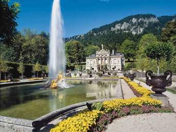 Die Schlossrunde bietet gleich mehrere kulturelle Highlights im Naturpark Ammergauer Alpen. Die Tour führt vom Passionsspielort Oberammergau über die Benediktinerabtei Ettal bis zum Schloss Linderhof, dem "Königshäuschen" des Märchenkönigs Ludwig II. Der Radweg führt durch das Graswangtal und entlang des Naturschutzgebiets Weidmoos. Mit einer Länge von 31 km ist die Tour auch gut für Familien geeignet. Zwischendrin gibt es immer wieder schöne Plätze um eine Pause einzulegen.