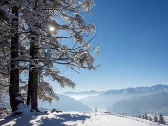Sehr schöne Schneeschuhwanderung über mehrere Gipfel mit stetigem Panorama und gemütlicher Hütteneinkehr beim Abstieg.