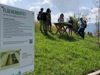 Auf vier Stationen kann jeder selbst Erfahrungen sammeln: den Klimawandel erklingen lassen, im phänologischen Garten die aktuelle Jahreszeit anhand der Pflanzen bestimmen, ein kleines Landart-Projekt mit der Hummel und Sand austesten oder die Landschaft durch die Brille verschiedener Akteure wie Landwirte oder Touristen sehen.