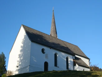 Rund 300 Meter später zweigen Sie nach einem Wegekreuz scharf rechts und bewältigen einen kurzen Anstieg zur Wallfahrtskirche Kappel hinauf. Die kleine Kirche ist ein guter Platz zum Verschnaufen und für eine herrliche Aussicht.